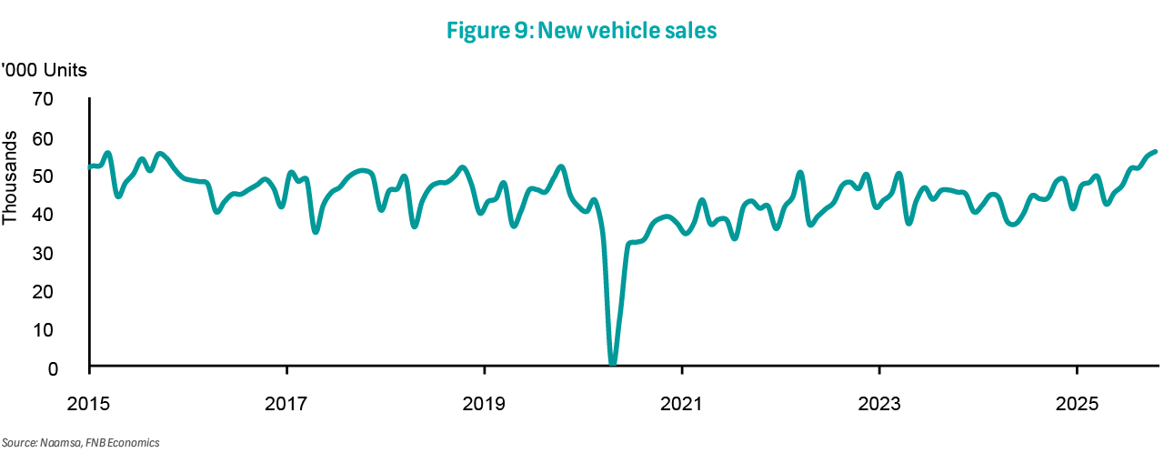 Also on Tuesday, new vehicle sales data for November will be released. Vehicle sales volumes increased by 16.0% y/y in October, reaching 54 683 units. The increase was mainly driven by new commercial vehicle sales which expanded by 19.1%, while new passenger car sales increased by 14.8%. Sustained sales momentum reflects the combined impact of an ongoing replacement cycle, low and stable inflation, recent interest rate cuts, and resilient demand for entry-level and affordable brands.