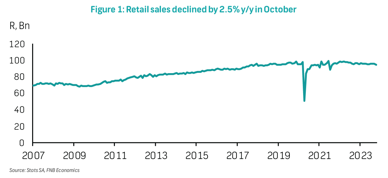 Following the first expansion of the year in September, retail sales volumes reverted to contractionary territory, declining by 2.5% y/y in October. This was materially lower than the Reuters consensus expectation of a 0.9% increase. On a month-on-month basis, seasonally adjusted volumes fell deeper by 1.2%, from a marginal decline of 0.1% (revised down from a 0.1% growth). The setback likely reflects consumers' delayed shopping decisions, in anticipation of Black Friday deals in November. Nevertheless, year-to-date volumes are 1.5% lower than the same period last year, underscoring the challenging consumer backdrop, with cost-of-living pressures weighing on consumers discretionary incomes.